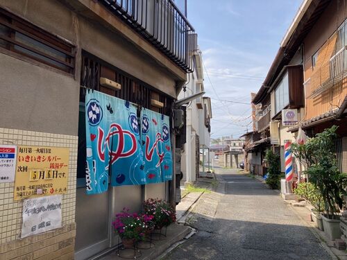 巨大なUBE三菱セメントの伊佐セメント工場の南側に、昔は賑わったことを感じさせる商店街(商店跡含め)があります。工場沿いに1キロほど断続的に商店が並び、昔の栄華を感じられます